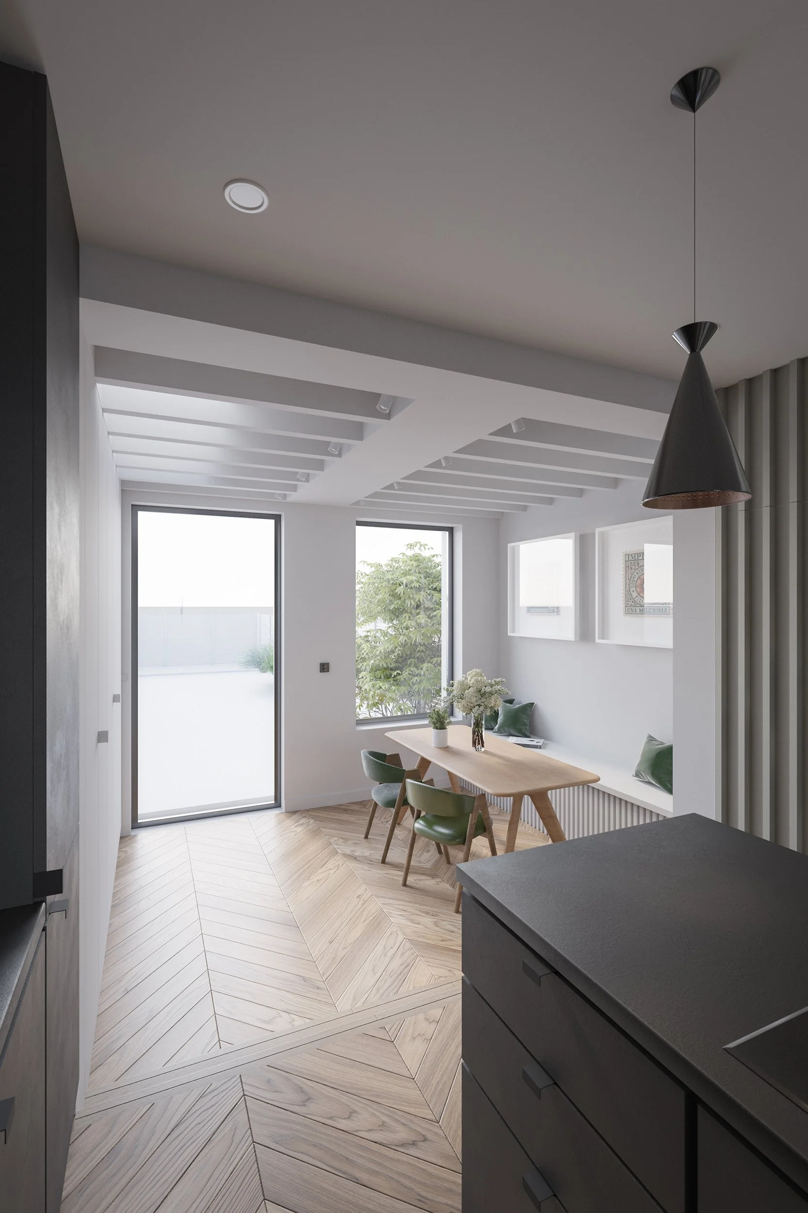 Our clients had been living in this house for nearly three years when they began preparing for a significant life change—the arrival of their first child. One of the main challenges they faced was the limited space in their compact Victorian home. The entrance hallway was particularly narrow, cluttered with multiple doorways that made the area feel cramped and chaotic. With a growing family on the way, creating a functional dining area that was easily accessible from the kitchen became a top priority.